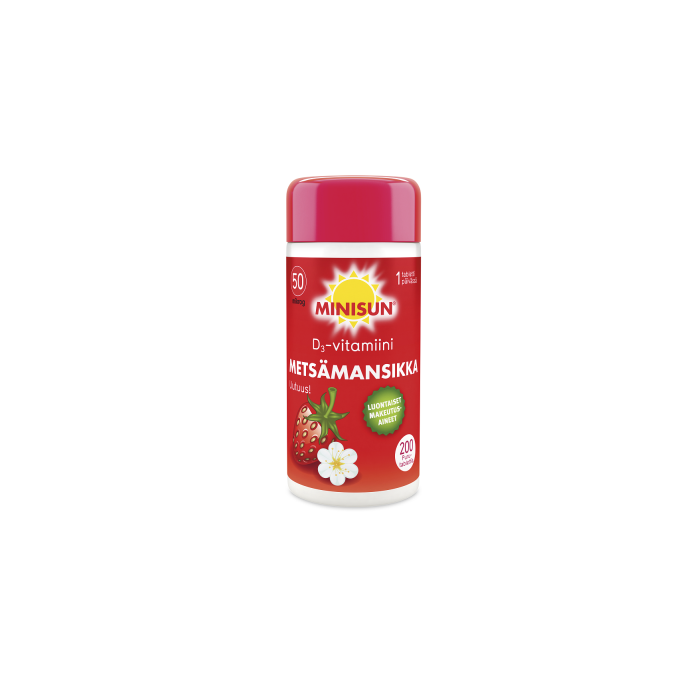 Minisun D-vitamiini Metsämansikka 50 mikrog 200 purutabl